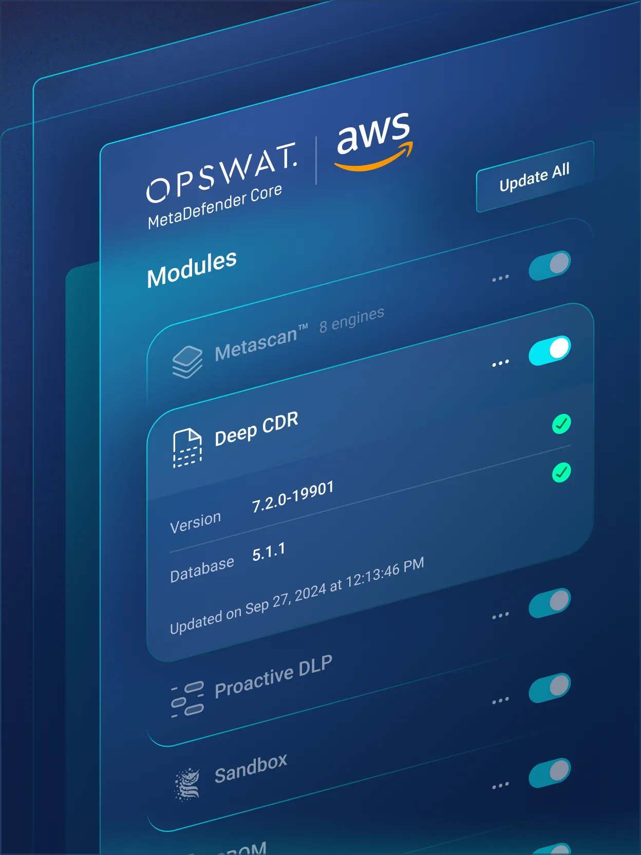 MetaDefender Core delivers advanced threat detection and prevention for regulated environments. Using Predictive Alin AI, Deep CDR™ Technology, Metascan™ Multiscanning, Proactive DLP™, Adaptive Sandbox Threat Intelligence, File-based Vulnerability Assessment and SBOM, it stops zero-day attacks, aids compliance, and secures every file across security workflows without slowing your business.