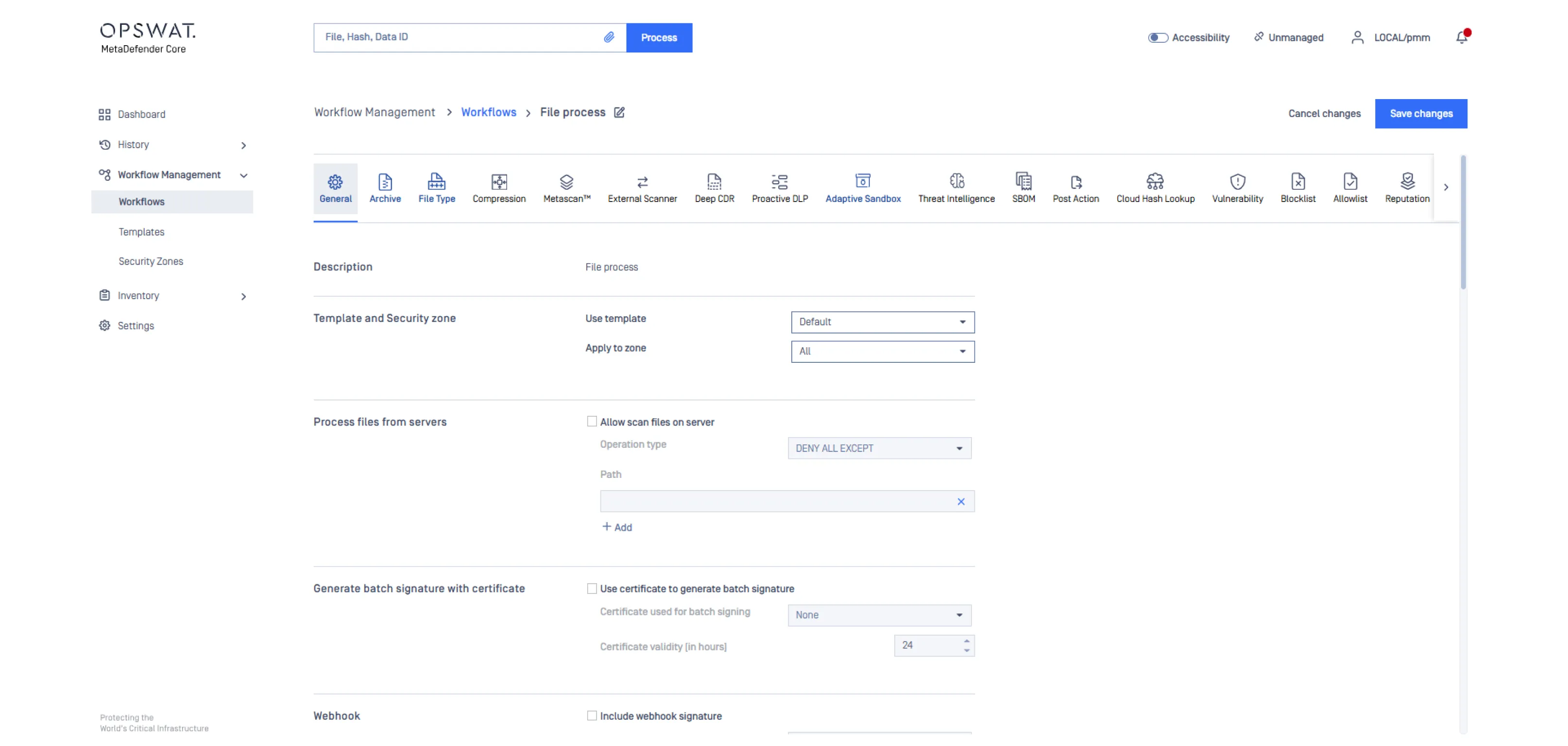Configure security aligned workflows to match your operational policies across email, file transfer, storage, or custom environments. Establish how files enter the system and how they are processed.