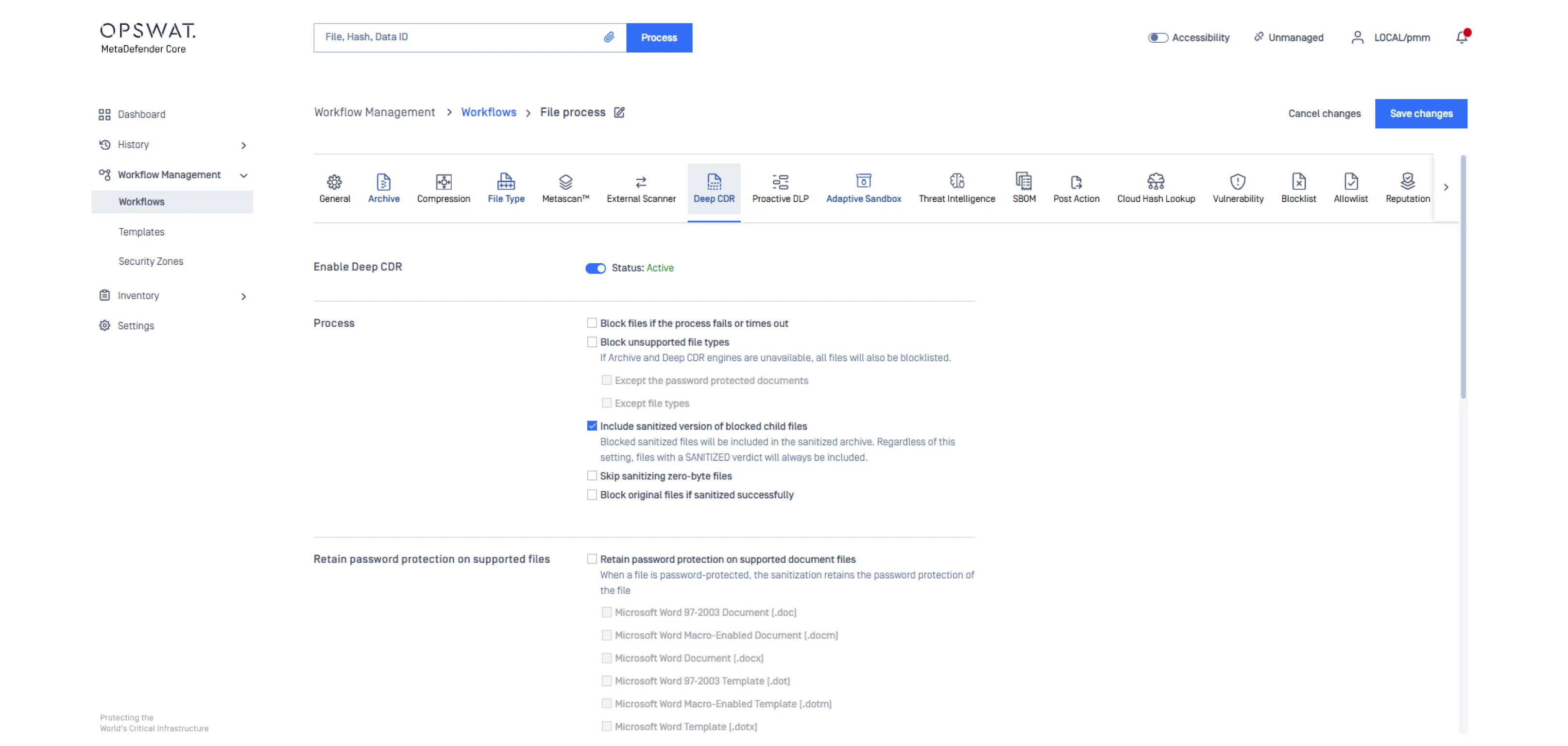 Define how files are inspected and cleaned through strict file type detection, recursive archive extraction, and Deep CDR™ Technology policies. Configure rules that govern how content is analyzed, reconstructed, and approved before it is released to downstream systems.