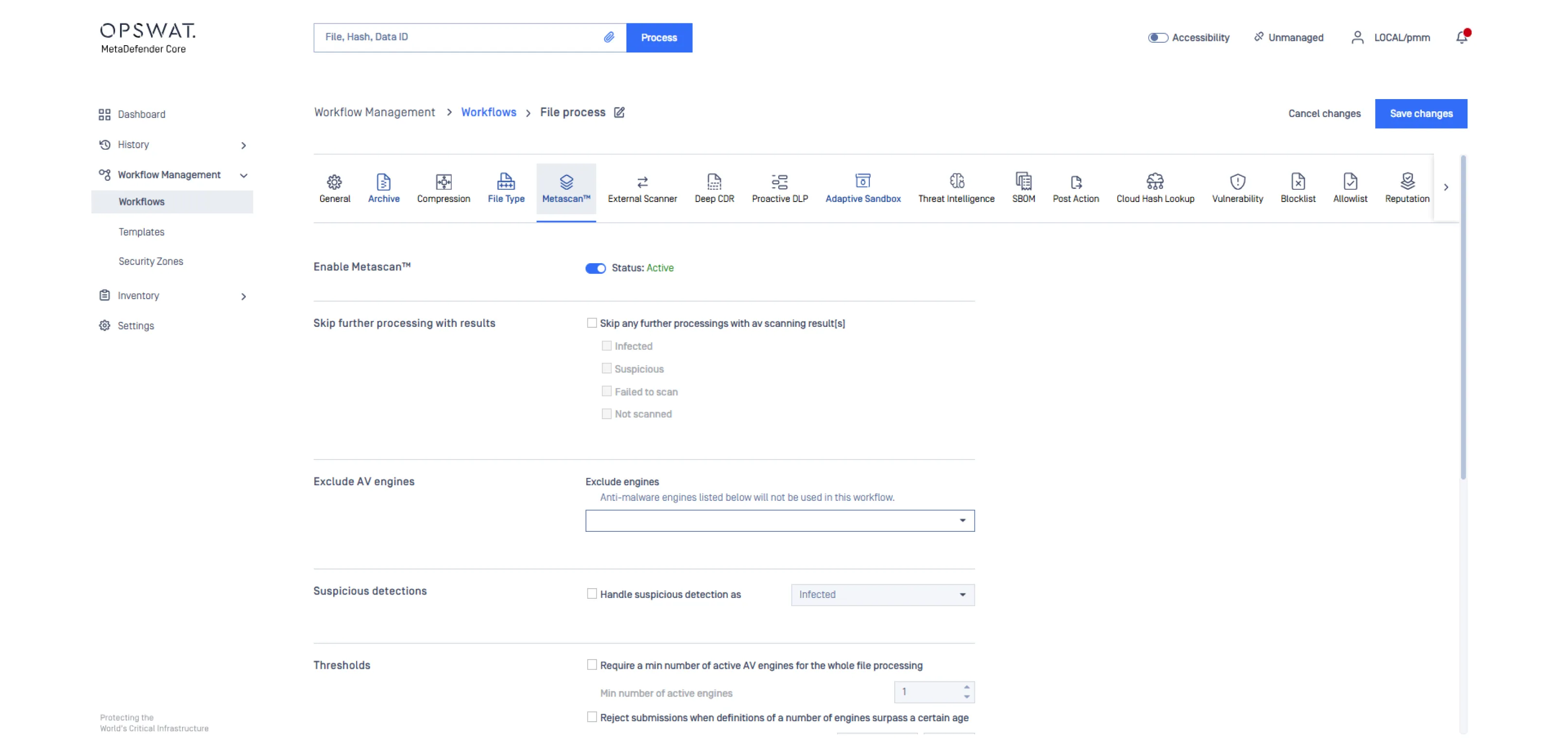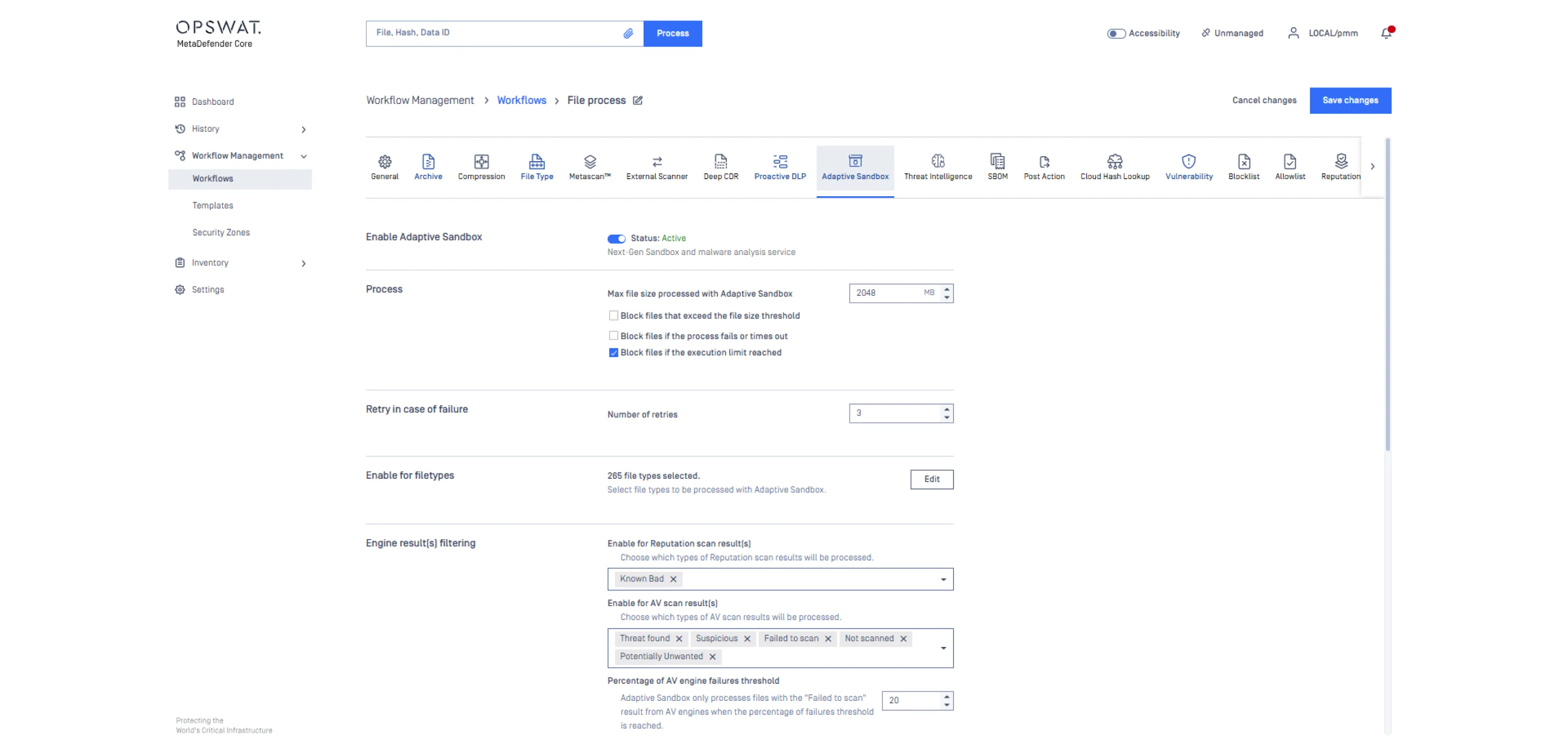 Configure antivirus engines based on the package you have licensed and tailor how they contribute to threat evaluation. Adjust detection scoring, engine selection, scanning depth, and performance settings to achieve balanced and comprehensive threat coverage.