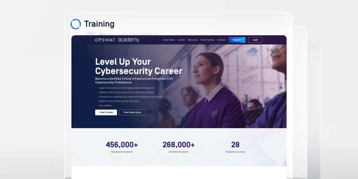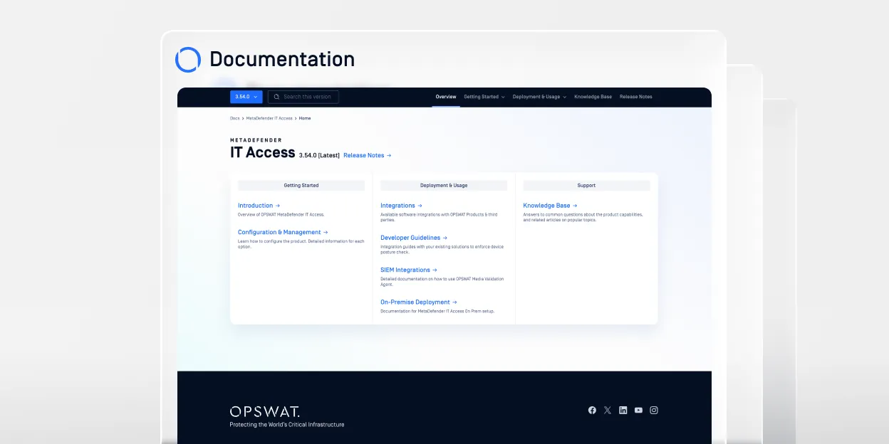 OPSWAT 檢測常見漏洞和披露 (CVE) 庫中的所有已知威脅。與 MetaDefender® 結合,使用 IT-OT Access專用評分系統(為保護超過1億個端點而開發), OPSWAT 能優化優先順序和補丁管理。